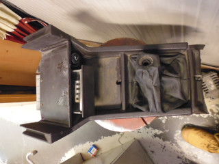 Mobiletto consolle tunnel centrale con cuffia cambio, accendisigari e posacenere per Alfa Romeo Alfetta Quadrifoglio ORO anni 80. Usato come da foto.